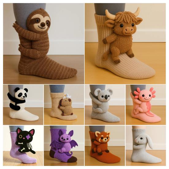 Очаровательный дизайн куклы-животного: Эти вязаные напольные носки с очаровательными 3D куклами животных добавят игривый и милый штрих к вашей домашней одежде, они идеально подходят для детей и взрослых, которые любят забавную моду.