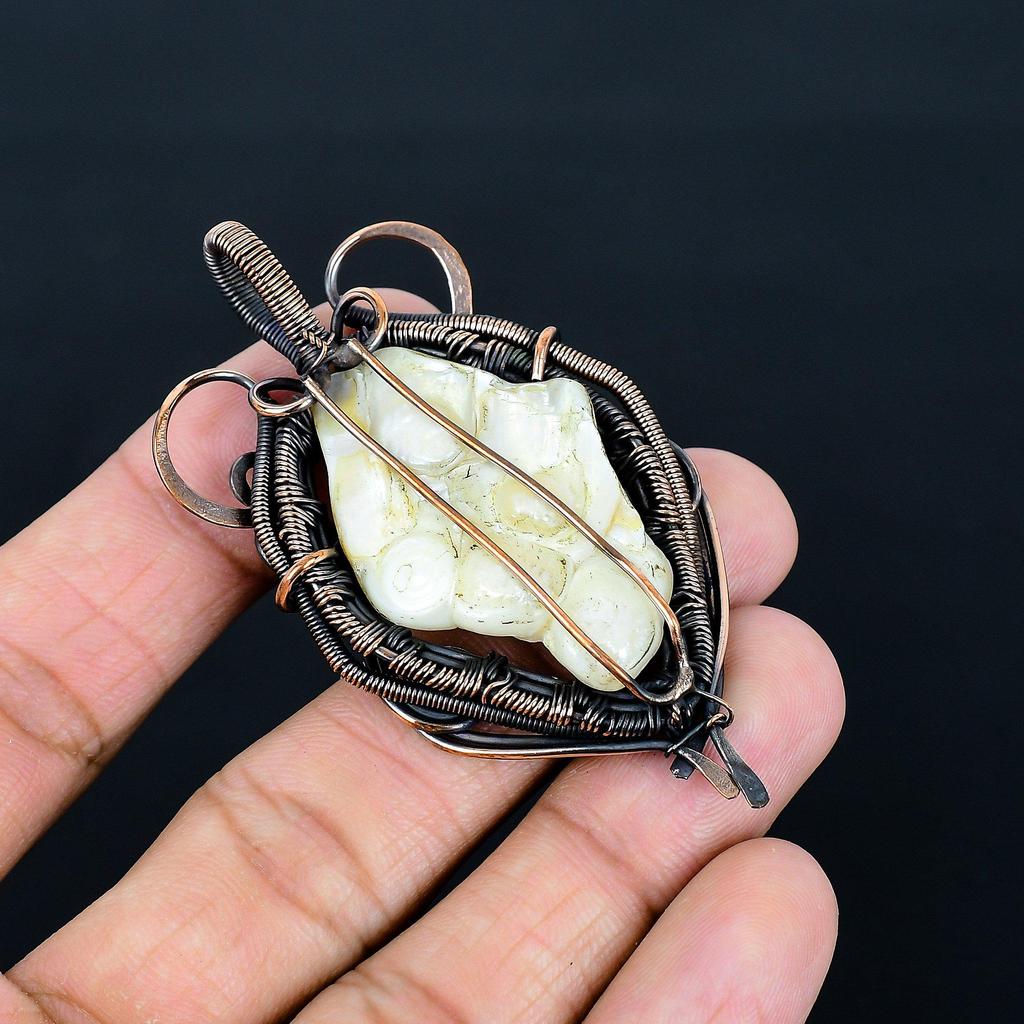 Biwa Pearl 999 Copper Wire Wrapped Pendant, Handmade Gemstone Pendant Jewelry, Gifts For Wife Brand New Pendant