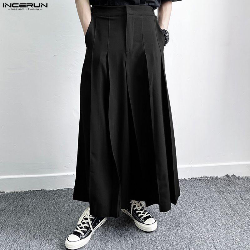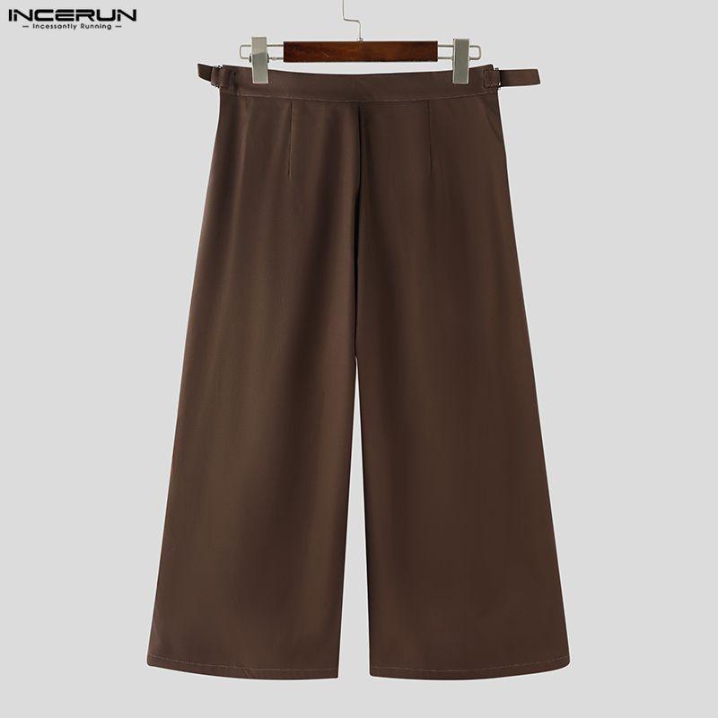INCERUN Мужские повседневные брюки с высокой талией на молнии, длинные плиссированные брюки с широкими штанинами