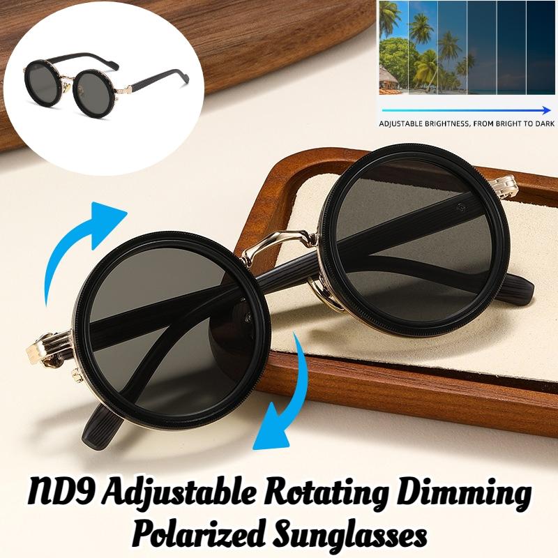 Мужская мода Новые ND9 Регулируемые солнцезащитные очки Нейтральная мода Вращающийся светопоглощающий фильтр Круглая оправа Поляризованные солнцезащитные очки