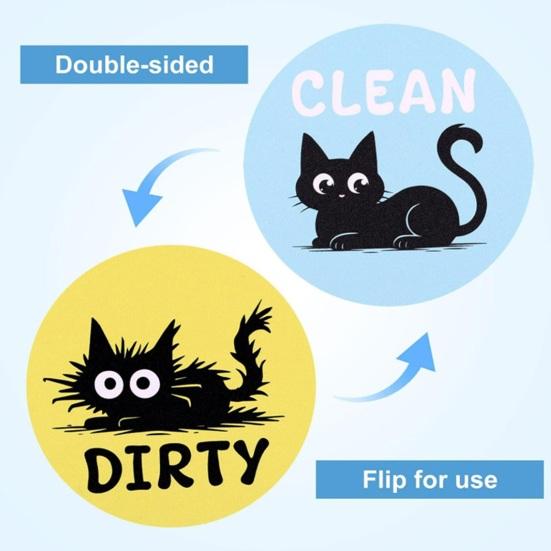 Магнитный знак для посудомоечной машины Чисто Грязно Милый кот Круглый Магнитный стикер на холодильник Односторонний Магнитный индикатор Магнит-напоминание для кухни