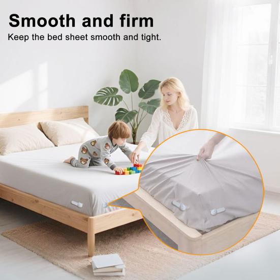 Универсальная посадка и стабильность: Наши зажимы для простыней подходят для всех размеров матрасов, от односпальных до королевских кроватей, включая различные толщины простыней.. Нескользящая фиксирующая накладка гарантирует плотное прилегание, предотвращая скольжение и поддерживая идеальное состояние простыни.