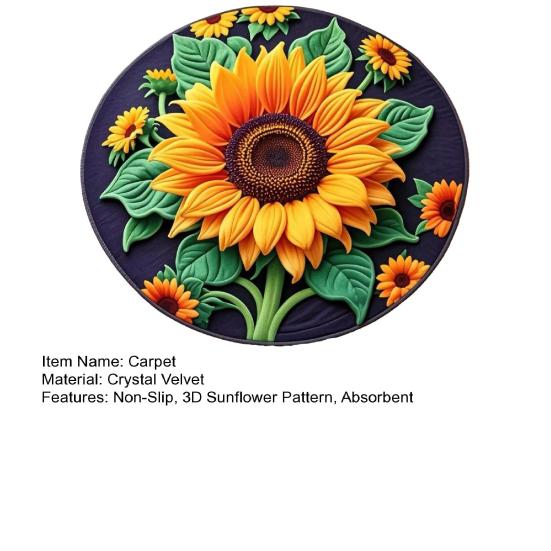 3D Цветочный Дизайн для Элегантности: Этот ковер, украшенный завораживающим 3D-рисунком подсолнуха, привносит мягкую и изысканную эстетику в любую комнату.. Плюшевая поверхность дарит ощущение облака, что делает его идеальным для создания уютной атмосферы в спальнях, ванных комнатах или туалетных зонах.