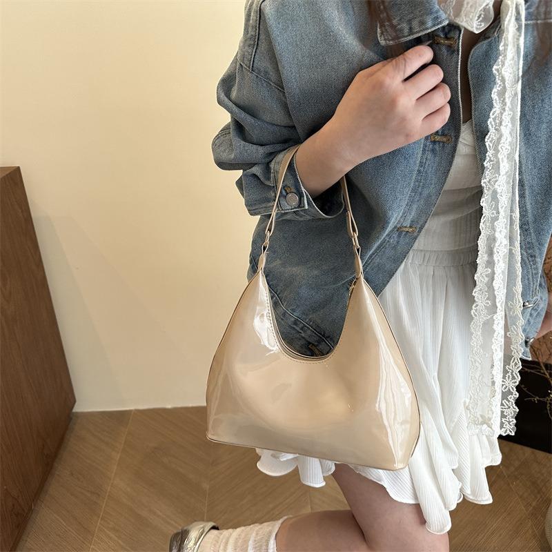 Нишевая текстура ретро лакированная кожа глянцевая женская сумка на плечо подмышку новая универсальная простая сумочка