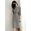 Французское вязаное платье для женщин однотонное повседневное платье-свитер женский осенне-зимний свитер средней длины
