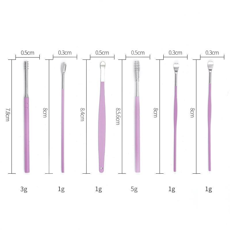 6 шт./набор средство для чистки ушей Палочки для удаления ушной серы Нержавеющая сталь Ухочистка Средство для удаления серы Набор для пирсинга Кюретка-ложка для ушной серы Уход Инструменты для чистки ушей