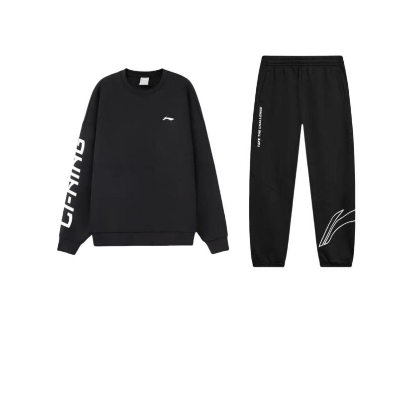 Li Ning Пуловер свободного кроя с принтом букв, с круглым вырезом и длинными рукавами, Толстовка, Повседневный спортивный костюм, Унисекс, Черный AKLTD71-1+-AWDRF44-2