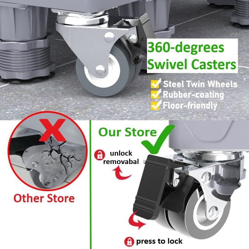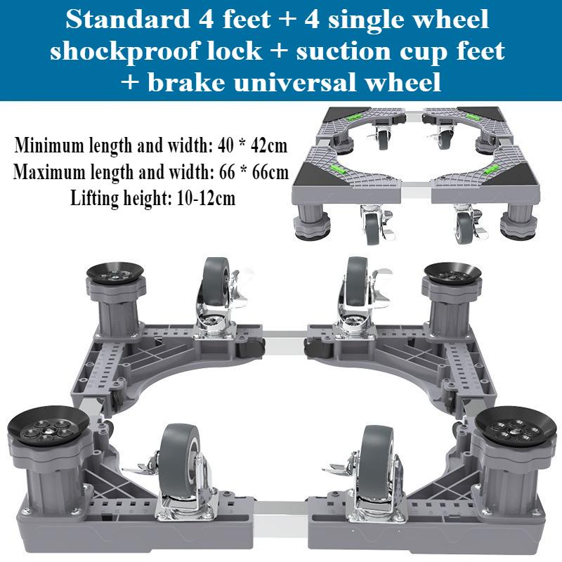 Мобильная база с 4 сдвоенными колесами с фиксаторами и 4/8 прочными ножками 44-66 см Мебельная тележка Регулируемая подставка для холодильника стиральной машины