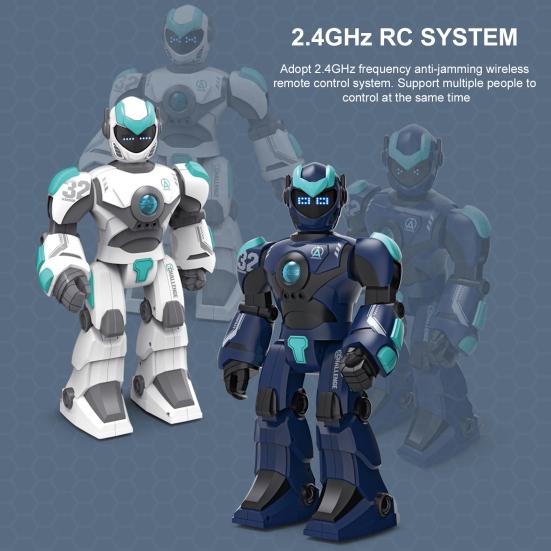 Этот радиоуправляемый робот, оснащенный функциями голосового управления и распознавания жестов, реагирует на команды пульта управления 2,4 ГГц и жесты рук для плавного передвижения.. Голосовые команды добавляют дополнительный уровень интерактивности, позволяя пользователям участвовать в разговорах и давать инструкции.