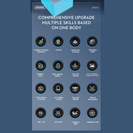 Наш радиоуправляемый дрон для аэрофотосъемки имеет функцию зависания, управление приложением, безголовый режим, одну ключевую функцию взлета / посадки, всенаправленное обнаружение препятствий и множество функций. Простота в эксплуатации облегчает задачу новичкам.