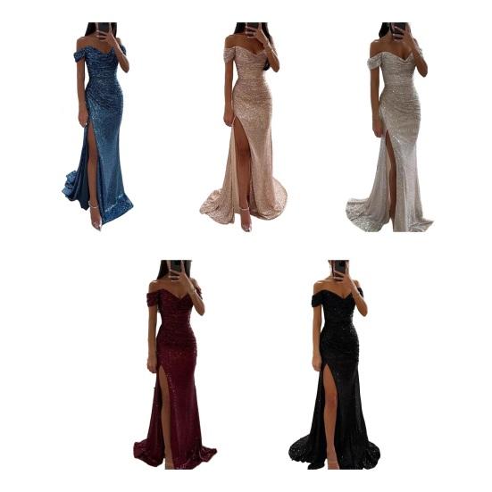Женское платье для выпускного с пайетками и разрезом, блестящее платье с открытыми плечами, формальное платье-русалка для вечеринки