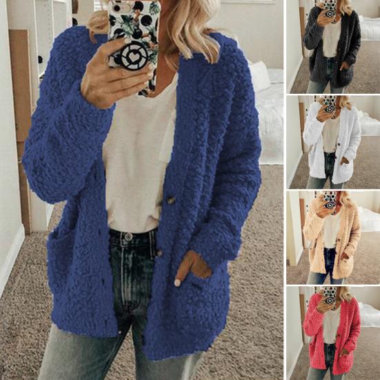 Женский свитер-пальто с длинными рукавами, без воротника, вязаная куртка с карманами, свободного кроя, однотонный, топы-пальто, осенне-зимняя одежда
