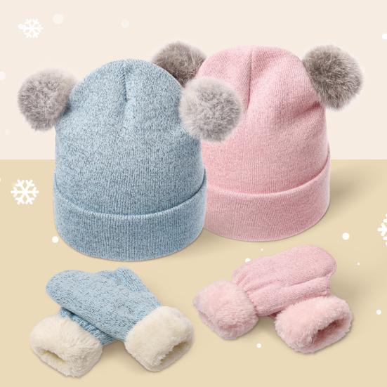 Детский зимний набор шапка, перчатки, шарф для девочек и мальчиков, утолщенный, на флисовой подкладке, вязаная шапка с помпоном, варежки, гетры для шеи, для малышей 3-6 лет