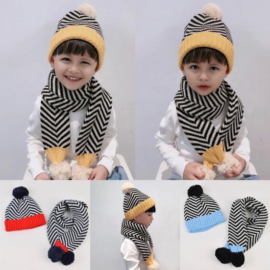 2 шт./компл. Детская осенне-зимняя шапка и шарф, плюшевый помпон, полосатый принт, шапка без полей, вязаный шарф — купить товар онлайн с бесплатной доставкой по всему миру!
