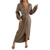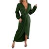 Женское атласное платье-запа́х длинное с V-образным вырезом, длинным рукавом, макси, с высоким разрезом, вечернее платье для вечеринки, коктейльное платье