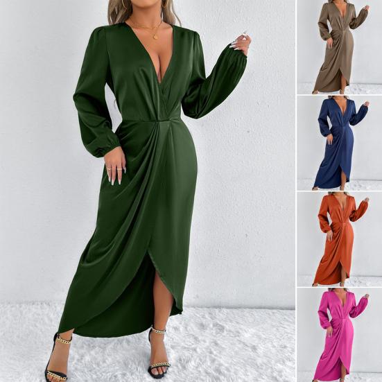 Женское атласное платье-запа́х длинное с V-образным вырезом, длинным рукавом, макси, с высоким разрезом, вечернее платье для вечеринки, коктейльное платье — купить товар онлайн с бесплатной доставкой по всему миру!