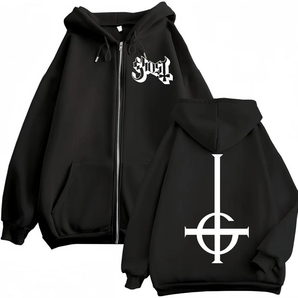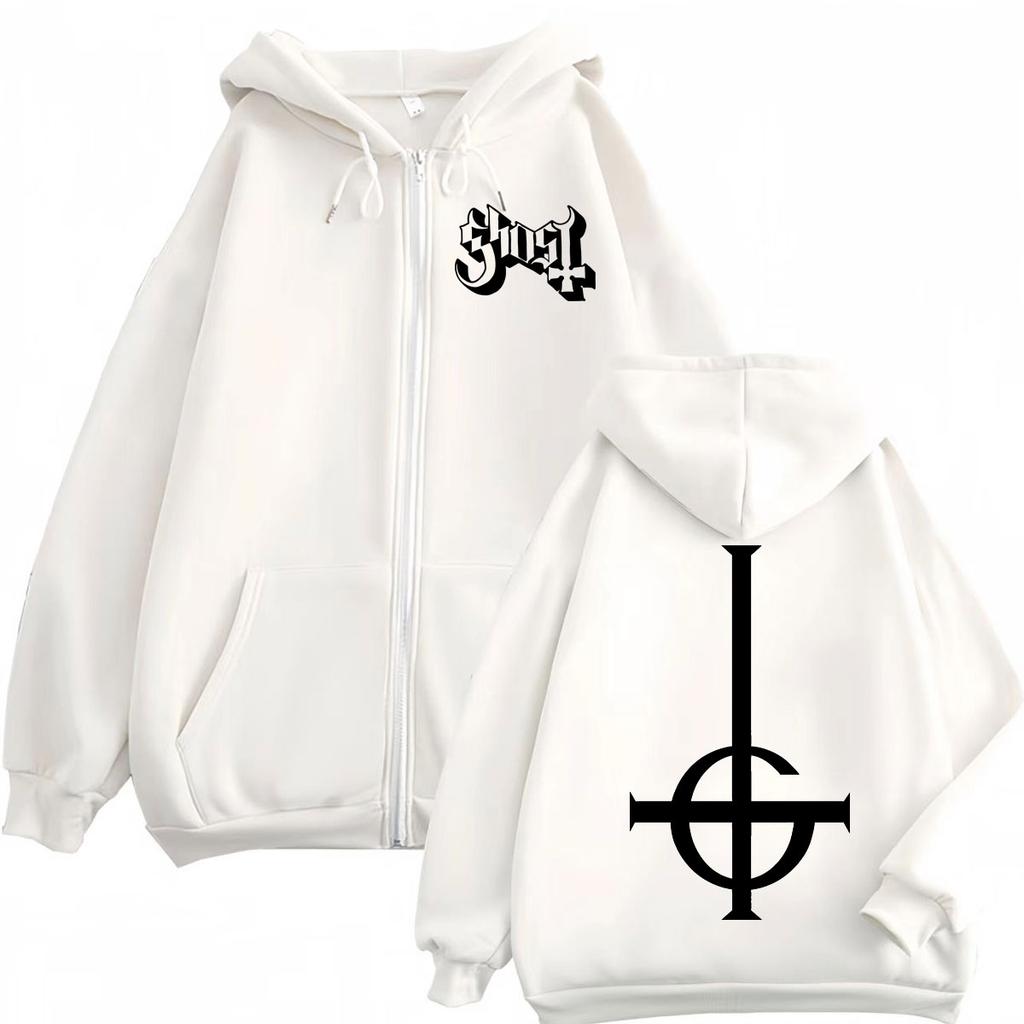 Горячая Распродажа Толстовка с капюшоном на молнии с логотипом рок-группы Ghost для мужчин и женщин, высококачественные модные толстовки на молнии, повседневные свободные флисовые пуловеры