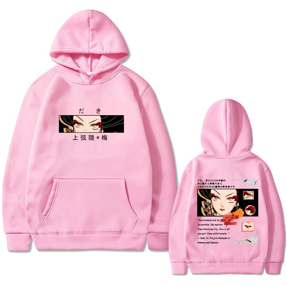 Аниме Клинок, рассекающий демонов Даки Глаза Графическое худи Мужская мода Повседневные флисовые пуловеры Толстовки Мужские Женские Винтажная уличная одежда