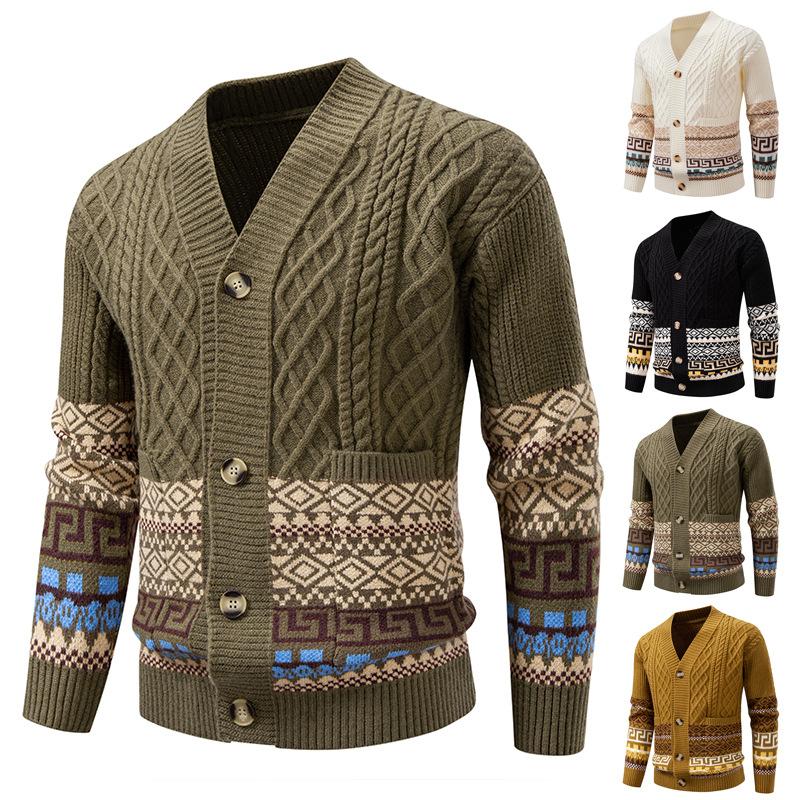 Мужские кардиганы-жакеты, вязаные косами, с V-образным вырезом, на пуговицах, свитера в рубчик, текстурированные, кардиган-жакет, повседневные свитера с длинным рукавом для мужчин — купить товар онлайн с бесплатной доставкой по всему миру!