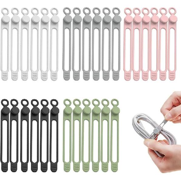 Органайзер для кабелей данных Многоцелевые Улучшенные Силиконовые Кабельные Стяжки Многоразовый Органайзер для Кабелей Менеджмент Кабелей для Крепления и Связывания Кабельных Шнуров Проводов