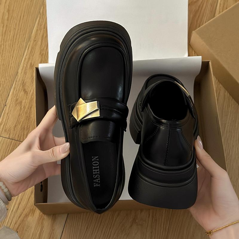 Черные туфли на платформе в британском стиле, маленькие кожаные женские, новая коллекция весна-осень 2025, ретро Мэри Джейн, лоферы на одной педали, одинарные туфли