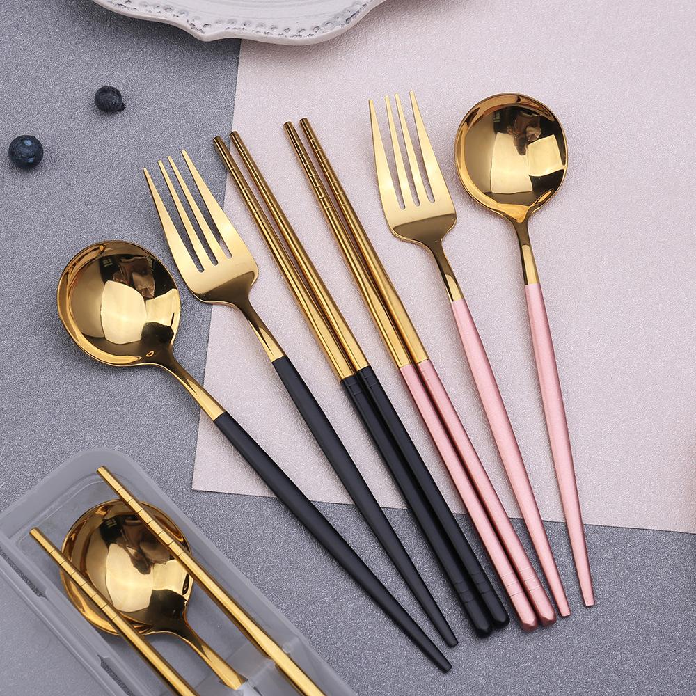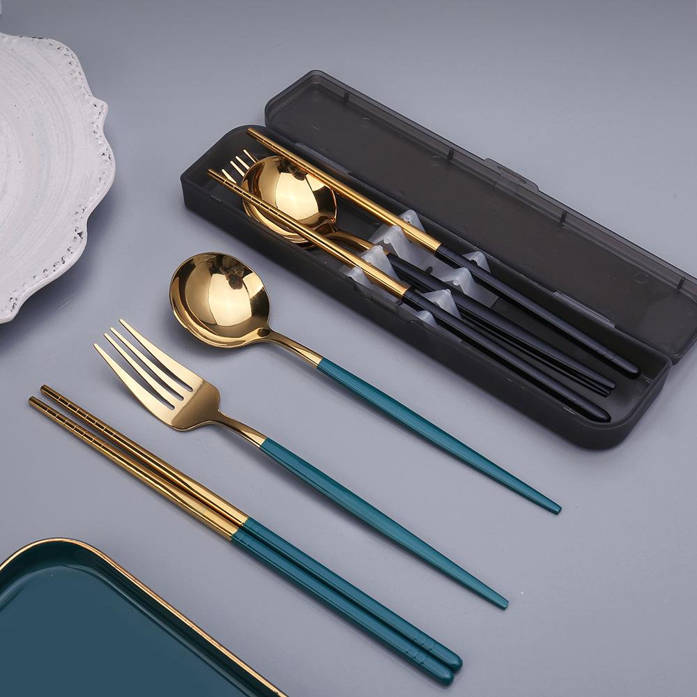 3 Pcs Spoon Fork Chopsticks Set With Storage Box Stainless Steel Coffee Snacks Fruit Dessert Fork Spoon Kitchen Teaspoon Set