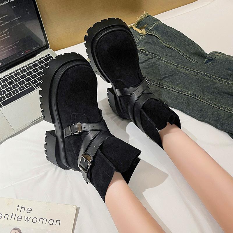 2025 осень новая ретро пряжка ремня маффин ботинки Мартина женские на толстой подошве тонкие Майяр короткие ботинки модные ботинки