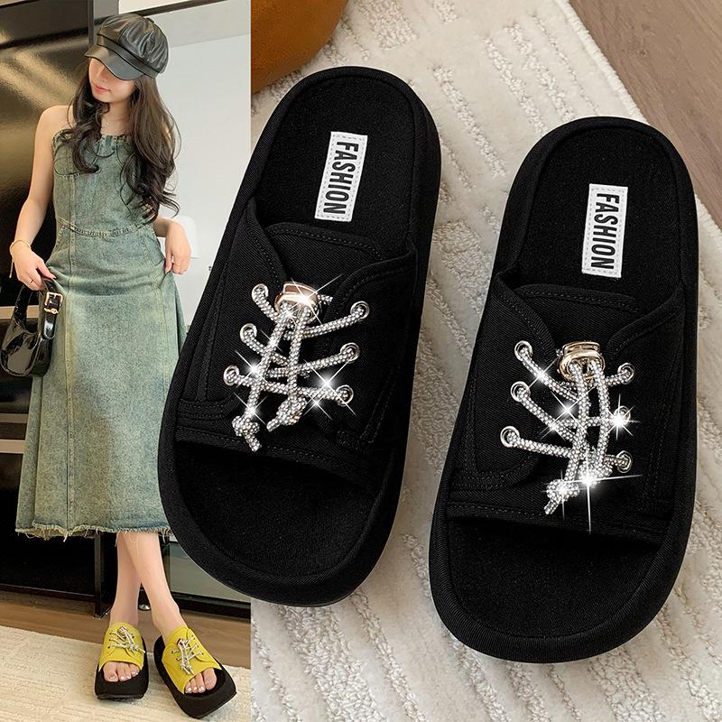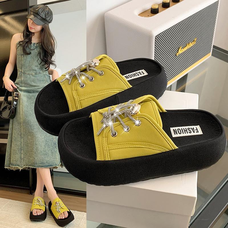 Muffin thick-soled cool slippers women's summer wear 2025 new versatile heightening beach one-word drag sports and leisure sandals