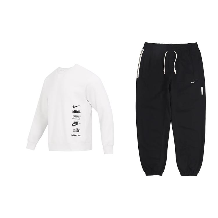 Nike Логотип Буква Флис Спортивный Повседневный Свитшот Пуловер с Круглым Вырезом Комплект Унисекс топы, низ CK6366-010+DX0782-030