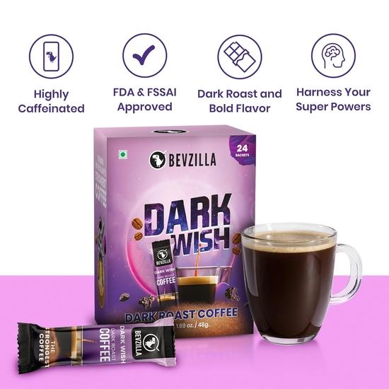 Bevzilla 24 пакетика/пакетика растворимого кофе темной обжарки - 48 грамм(Кофе Тёмное Желание) | Насыщенный и Интенсивный|Готов для Горячего и Холодного Заваривания