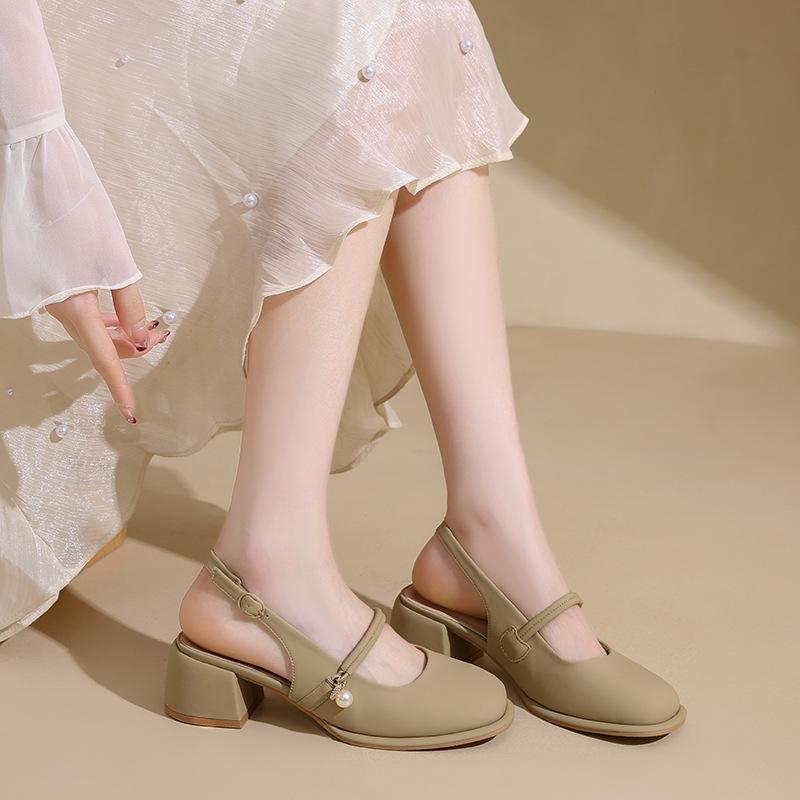 Французские сандалии на толстом каблуке с пустой сумкой на носке, женские, лето 2025, новые, с мелким вырезом, универсальные, с квадратным носком, туфли-лодочки на высоком каблуке — купить товар онлайн с бесплатной доставкой по всему миру!