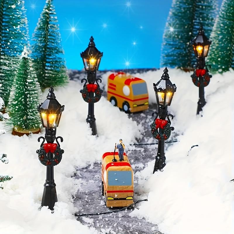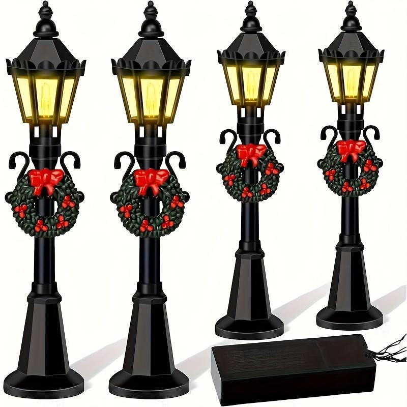 4 шт. рождественских фонарных столба, рождественские украшения, мини-уличные фонари, аксессуары для уличного освещения модельного дома, подходят для Рождества
