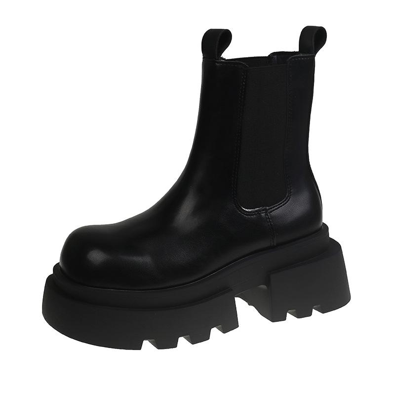 Черные челси короткие ботинки на толстой подошве с голенищами британский стиль ботинки Мартина женская обувь новые ботинки-чулки средней высоты