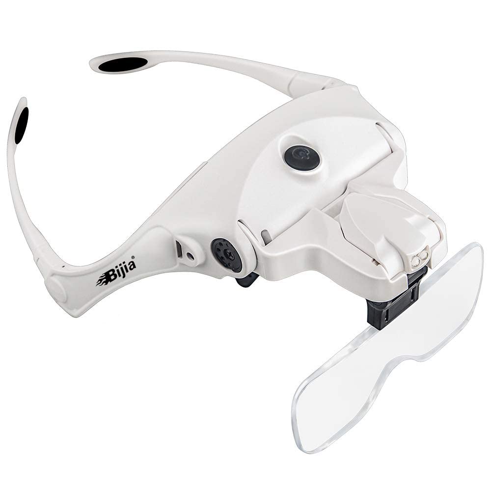 Bijia Очки Модернизированная USB Перезаряжаемая Головная Лупа со Светодиодной Подсветкой и Эластичной Лупой для и Точности 5 Сменных Линз