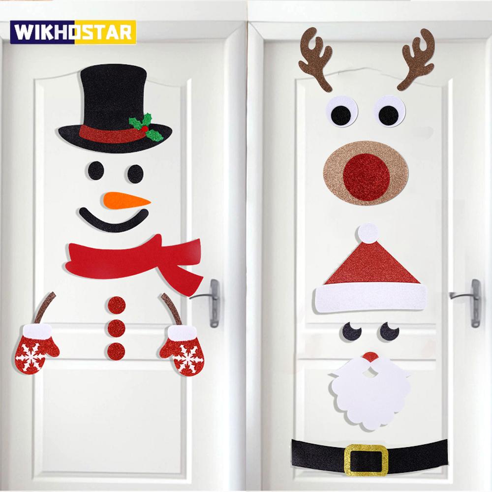 Рождественские наклейки на двери и окна, фетровая ткань, мультяшный снеговик, Санта-Клаус, лось, настенная наклейка для зимы, Рождества, Нового года, декоративная наклейка