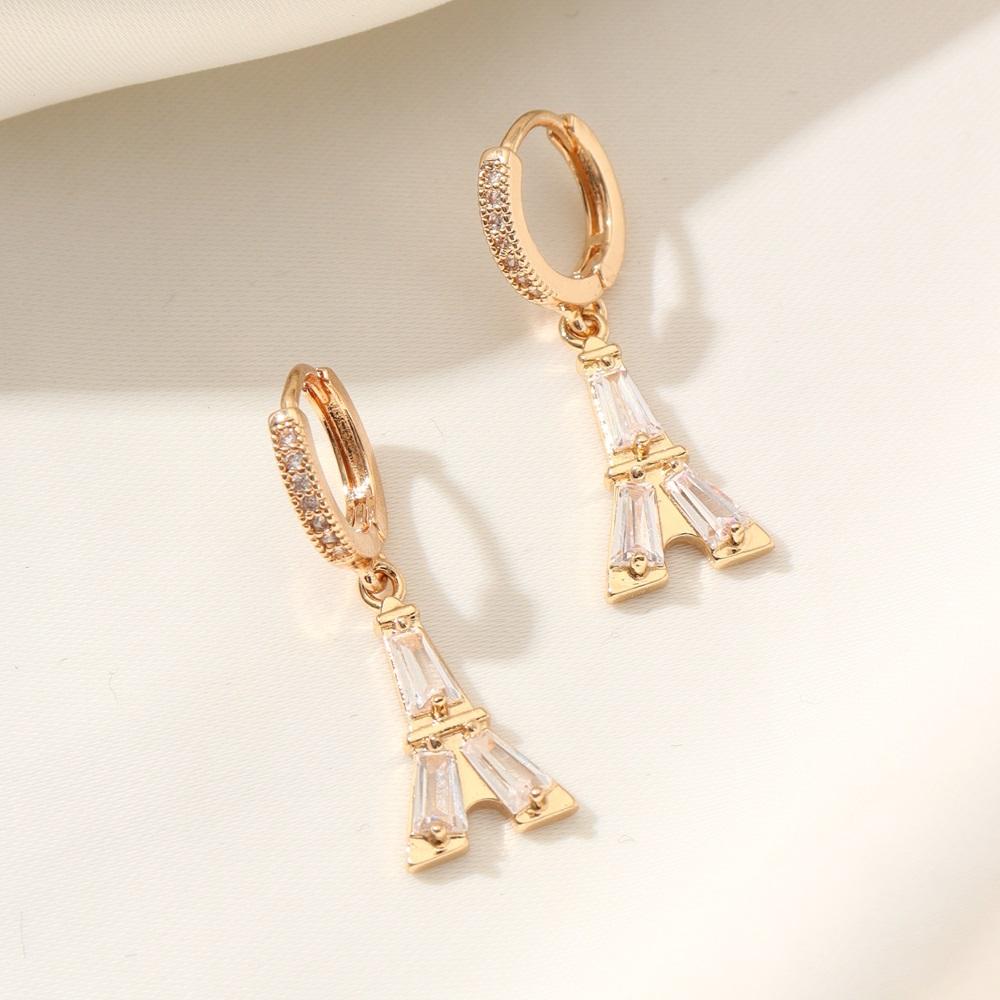 Tower Shape Dangle Earrings for Women 2025 New Fashion Zirconia Earring Golden Wedding Party Jewelry Accessories