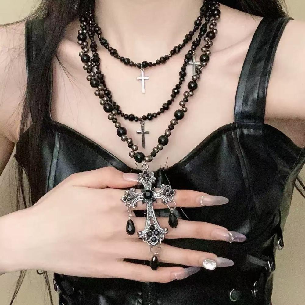 Темная Ночь Шипы Крест Звезды Многослойное Ожерелье-Чокер Spice Girl Черное Кожаное Ожерелье