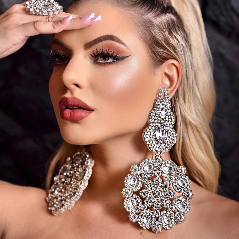 Преувеличенные серьги, полностью усыпанные бриллиантами, с ретро-дизайном, серьги со стразами, аксессуары для подиума — купить товар онлайн с бесплатной доставкой по всему миру!