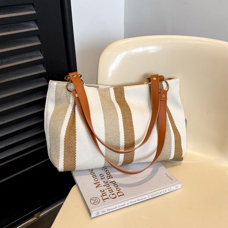 Вместительная наплечная сумка, новая простая повседневная сумка-тоут в вертикальную полоску, модная сумка с контрастными цветами