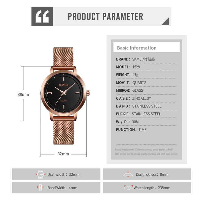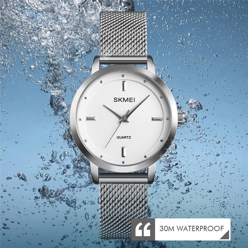 SKMEI Роскошные Женские Часы Мода Нержавеющая Сталь Водонепроницаемые Кварцевые Часы Женские Наручные Часы Женские