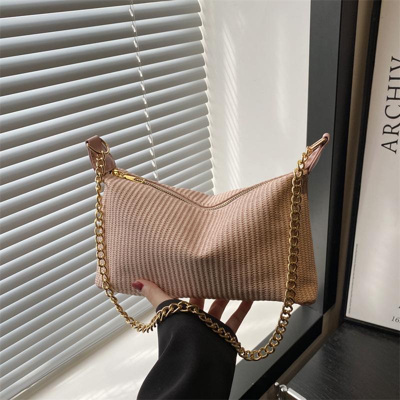 Красивая повседневная однотонная простая практичная универсальная легкая сумка-багет через плечо на цепочке подмышку