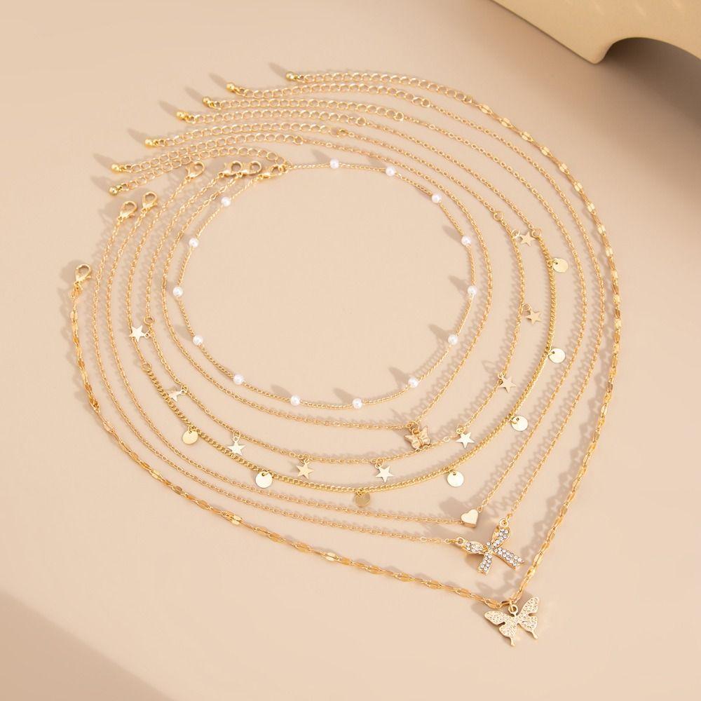 Pearl Clavicle Chain Butterfly Pendant Metal Choker Europe America Style Multilayer Necklace Party