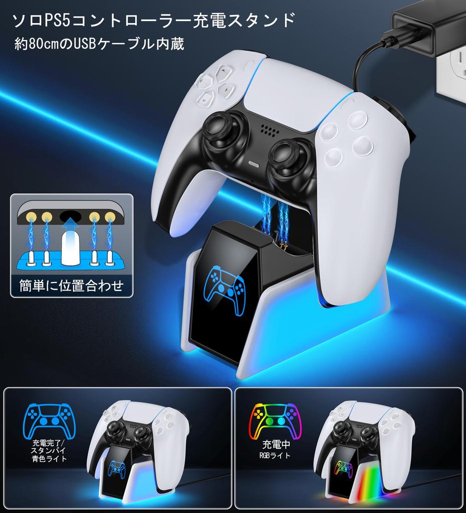 [Легко видимые светодиодные индикаторы] Зарядное устройство для контроллера PS5 имеет индикатор зарядки на передней панели и подсветку настроения по бокам. Во время зарядки контроллера индикатор зарядки и подсветка настроения отображают синхронизированные RGB-эффекты.. Когда контроллер полностью заряжен или находится в режиме ожидания, индикатор зарядки и подсветка настроения становятся синими.. Это позволяет с первого взгляда увидеть, заряжается ли контроллер или полностью заряжен.
