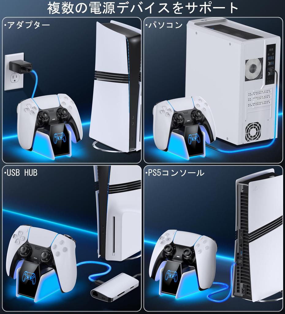 [Различные способы питания] Зарядная станция DualSense имеет встроенный USB-кабель и может питаться от консоли PS5/PS5 Slim/PS5 Pro, USB-хаба, компьютера и т. д.