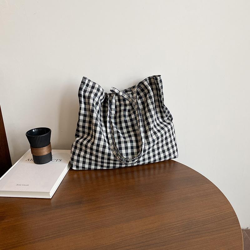 Летняя новая клетчатая свежая и красивая тканевая сумка, милая литературная нишевая ретро сумка на плечо, подмышку, портативная женская сумка