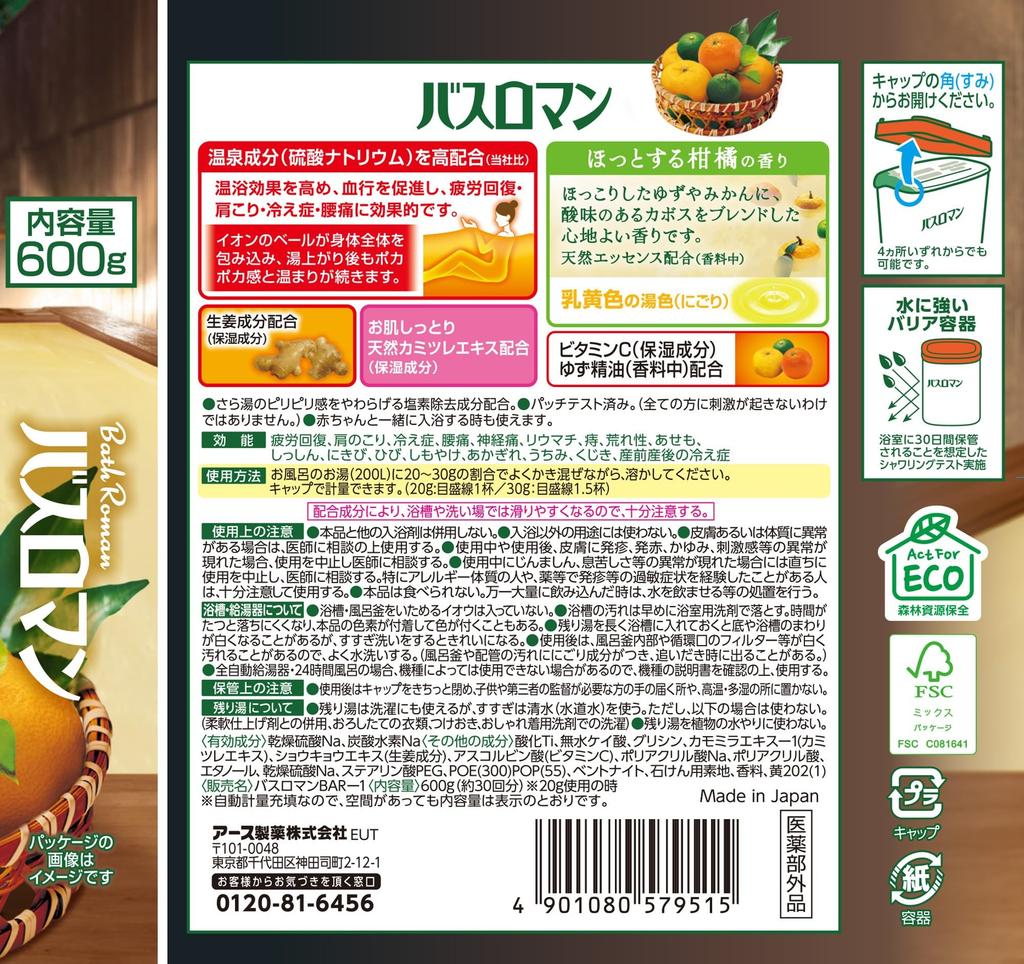 Bath Roman Bath Cloudy Citrus Contains Hot Spring Ingredients Medicinal Bath Powdered Bath Salts, Bath, Scent, 600g, (Sodium Sulfate), Salts,