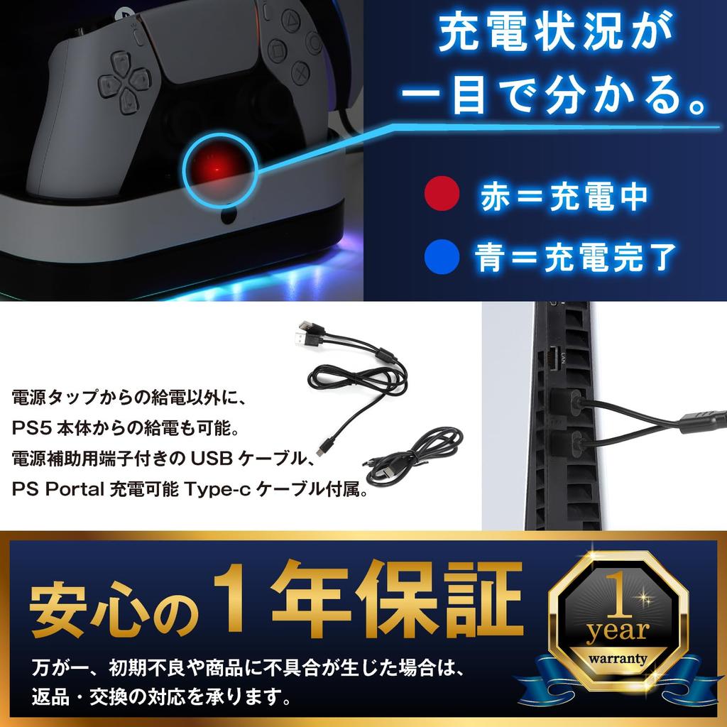 [Одновременная зарядка для PS Portal и контроллера] Это устройство может одновременно заряжать и PS Portal, и контроллер PS5. Он также работает с двумя контроллерами PlayStation 5 (DualSense/DualSense Edge). Игровой процесс на PS5 и контроллеры расположены в фиксированном месте, создавая аккуратную и упорядоченную игровую среду.. [Совместим как с оригинальными, так и с контроллерами Edge] Он полностью совместим как со стандартным оригинальным контроллером PS5 (Двойноесенс) и высококлассный контроллер DualSense Edge. Эта зарядная подставка для контроллеров безопасна для обоих пользователей. [Быстрая зарядка одним движением] Больше не нужно возиться с подключением и отключением кабелей. Просто поместите контроллер или PS Portal на подставку, чтобы начать зарядку вашей PS5.. Он быстро полностью заряжается примерно за 2-3 часа, позволяя вам возобновить игру, когда захотите.. [Интуитивно понятный светодиодный дисплей и подставка для хранения] Светодиодный индикатор горит красным во время зарядки и синим при полной зарядке. Вы можете быстро увидеть статус зарядки. Даже когда не заряжается, это красиво демонстрирует ваш контроллер PS5.