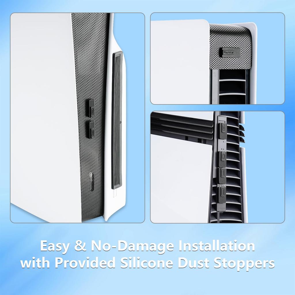 Специально разработан для PS5 Pro: Специально разработанный для консоли PS5 Pro, полугерметичный фильтр плотно прилегает к вентиляционным отверстиям и кабельным портам, обеспечивая эффективную защиту без ограничения воздушного потока.