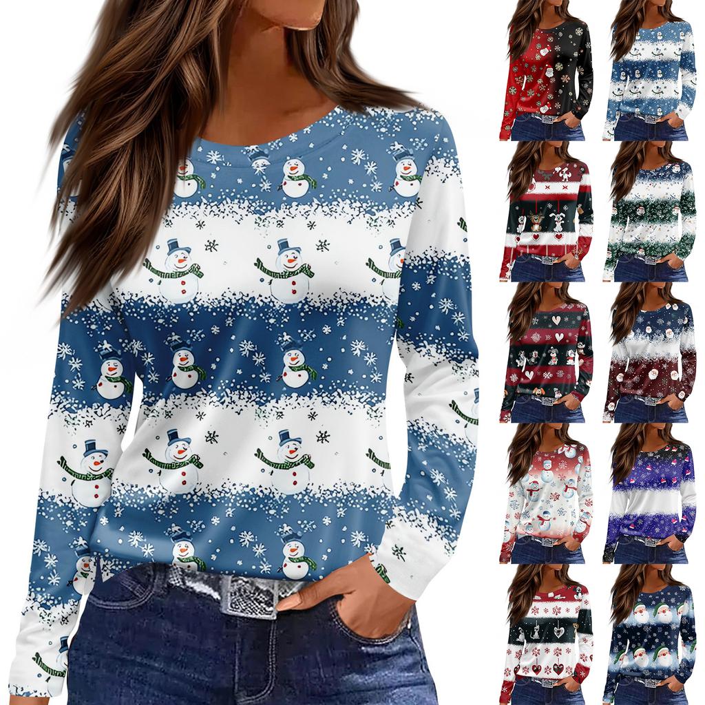 Женская модная повседневная футболка с разрезом по низу, круглым вырезом, длинными рукавами, свободного кроя, с рождественским принтом, женский топ — купить товар онлайн с бесплатной доставкой по всему миру!
