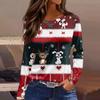 Женская модная повседневная футболка с разрезом по низу, круглым вырезом, длинными рукавами, свободного кроя, с рождественским принтом, женский топ